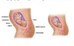 - Увеличивающаяся в размерах матка постепенно поднимается выше, все больше поднимая остальные внутренние органы.